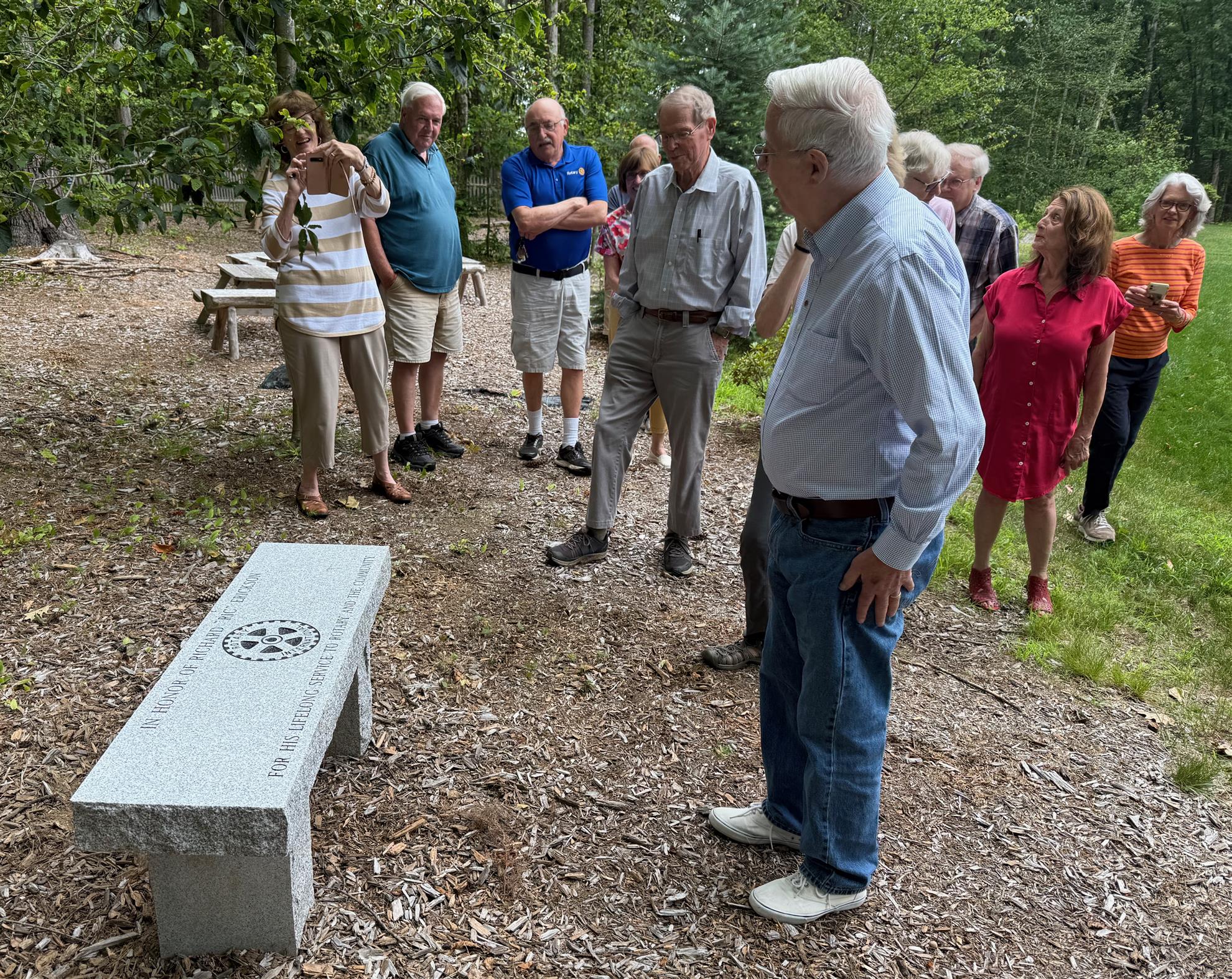 The Rotary Club of Durham Great Bay dedicated and unveiled a bench at the Madbury Library Gardens on July 9, 2025. This is honoring the Richard "Ric” Erickson for his life time in Madbury serving the community.